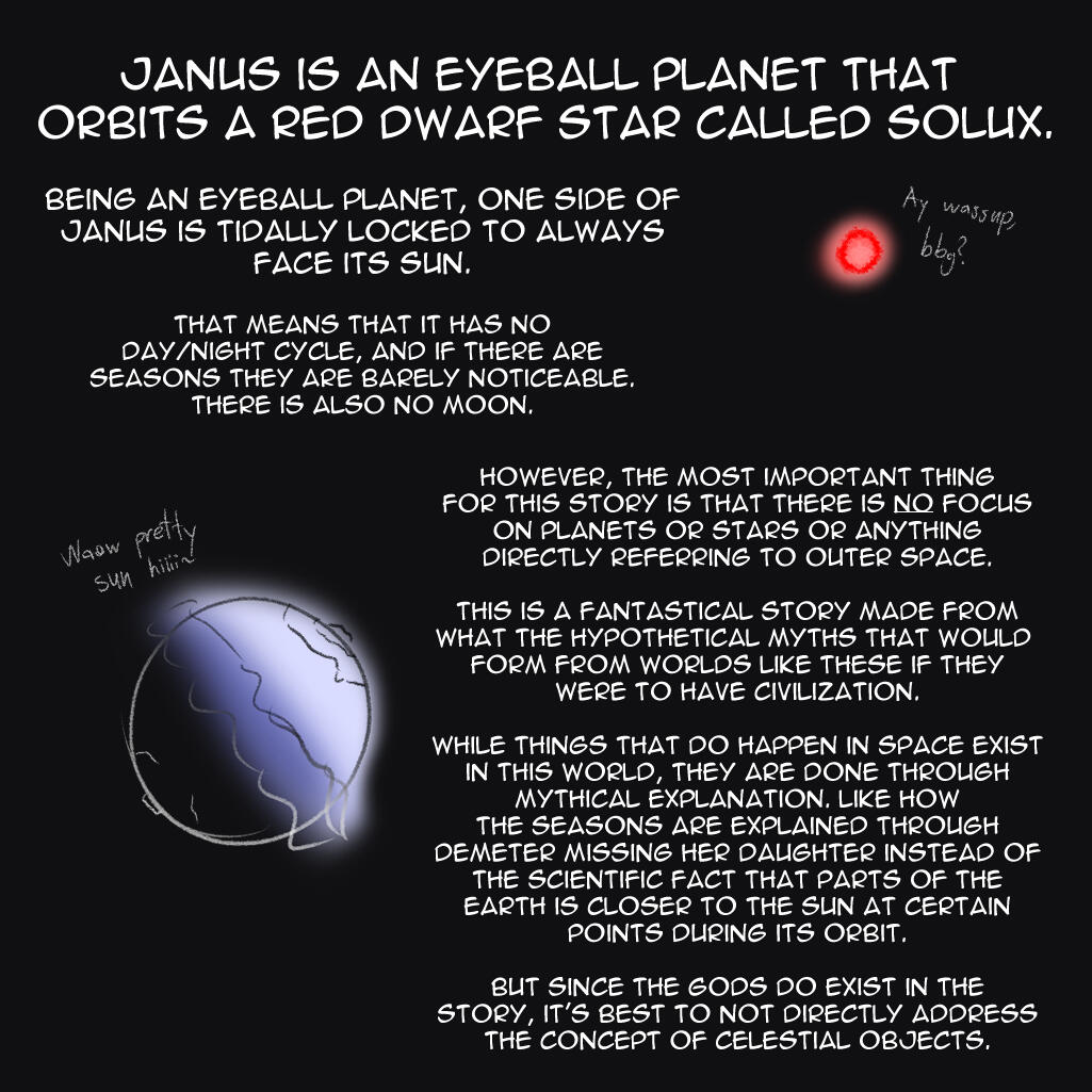 Janus is about a comic of three unlikely mortals chosen by the gods to journey to the other side of the world before the arrival of the God of Chaos. Bound by divine duty, these mortals must overcome their odds against each other if they are to save the world from total destruction.Janus is written and illustrated by GreyfaceRed.